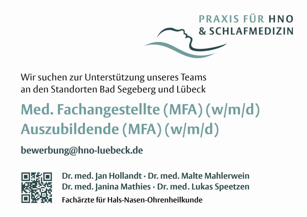 Wir suchen für unsere Praxis in Segeberg und Lübeck medizinische Fachangestellte (m/w/d).